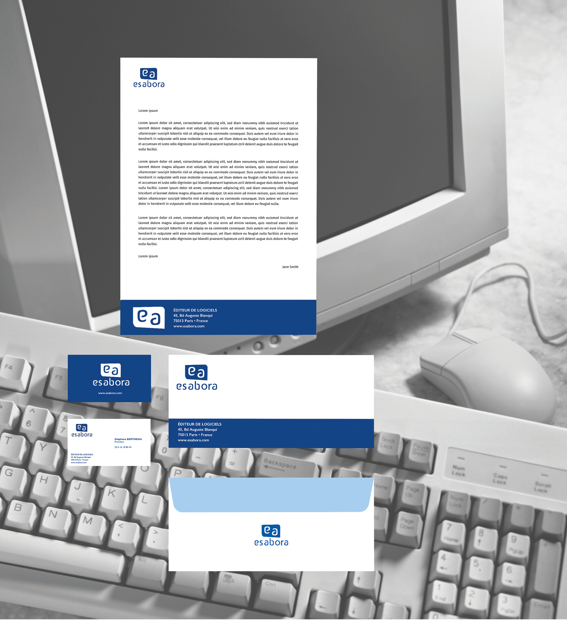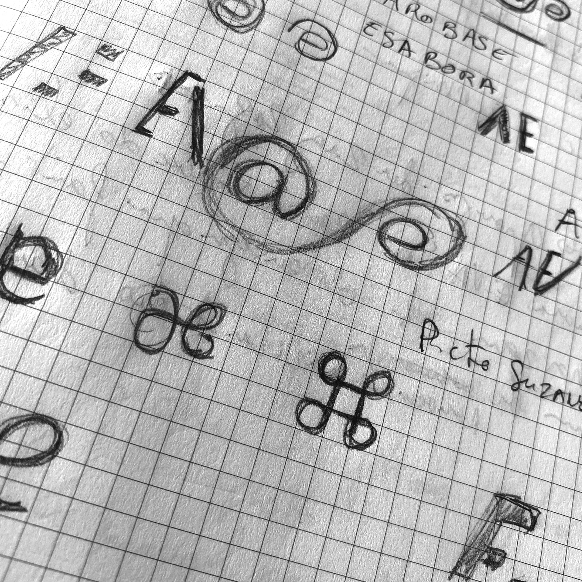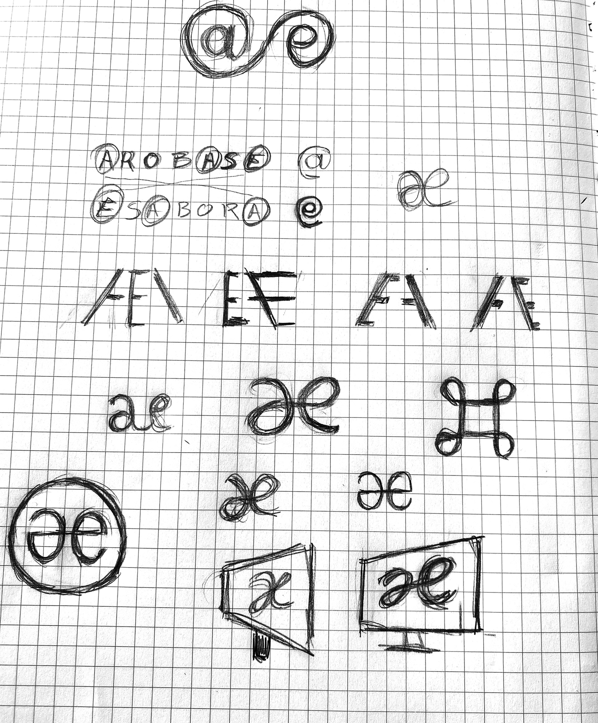 AROBASE me demande de travailler sur le changement de nom et la conception d’une nouvelle identité visuelle. À partir du palindrome ESABORA, la réflexion autour des lettres ae et inversement servira de base de dessin des lettres du futur logo.